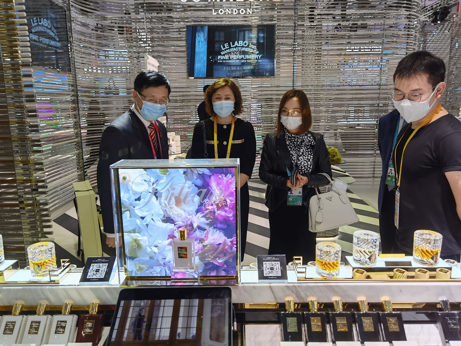 进博会期间,陈寅董事长还参观考察了中国旅游集团免税品供应商的相关展位,包括LVMH集团、历峰集团、开云集团、欧莱雅集团、雅诗兰黛等。