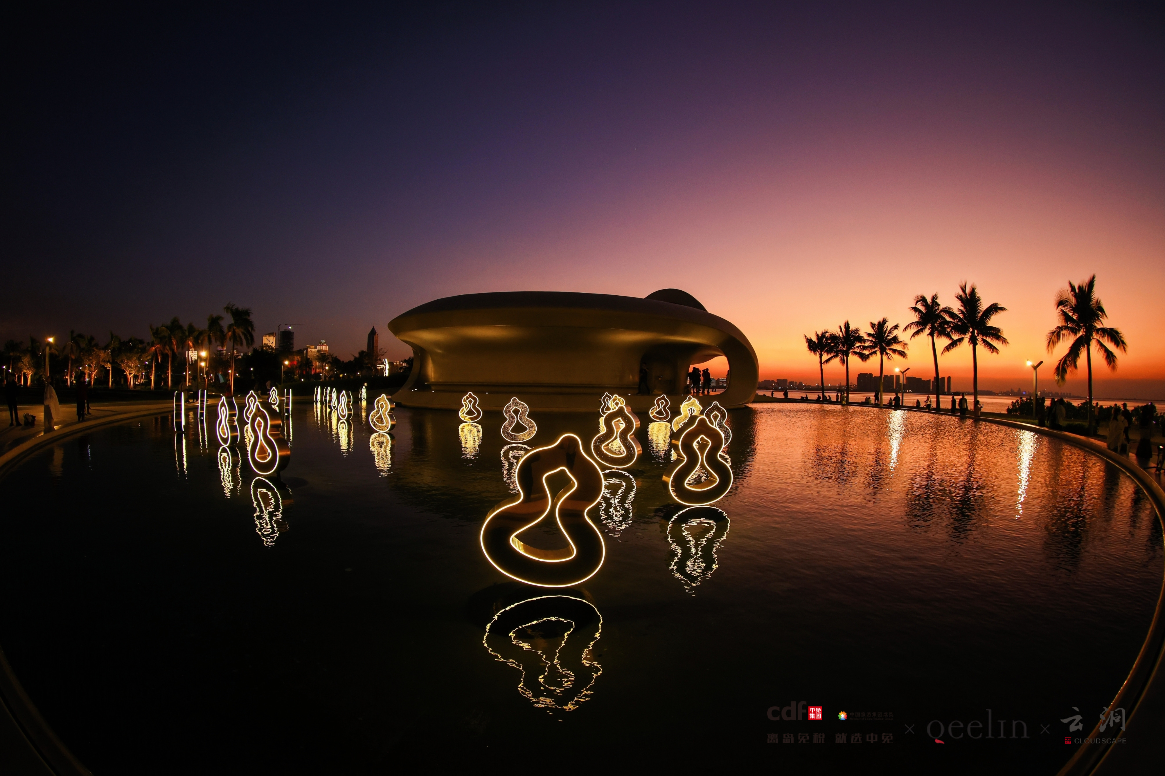 高级珠宝品牌Qeelin,擅长将中华传统文化图腾与现代美学相结合,配以精湛的珠宝工艺,打造出充满趣味的独特设计。而此次活动落地在海口市地标建筑——海口云洞图书馆,连接艺术与创新之巧思,迎面一串Wulu叠落造型的历史墙,展现Qeelin将中华传统艺术文化的瑰丽匠心不断传承。馆外于湖面之上,一抹Qeelin Wulu铺陈展开而来,葫芦风车、玲珑灯盒各呈姿态。可爱白色Bo Bo守候在不同的空间,恭候大家的到来。独特的装置艺术,不仅引燃了高曝光的话题度,更是吸引到众多对中国文化与艺术感兴趣群体的目光。