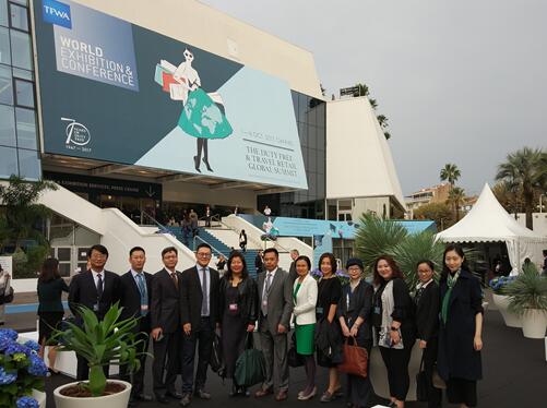 2017年10月1日—6日,全球免税行业齐聚法国名城戛纳,参加一年一度的世界免税协会展览会。受世界免税协会邀请,ac米兰官方网站总经理陈国强一行12人参加了本次展会。来自世界各地的免税运营商、品牌供应商、机场管理局和行业媒体共计2340人参加了盛会。在21,000平方米的场地上,共有514家公司展参,展示了数千种高端品牌,参展的公司和品牌均比去年有明显增长。今年的大会首次开设了“数据村”,展示了AR、电子商务、商业智能、机器人等免税和旅游零售领域的最新科技。