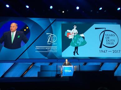 在第一天的大会上,世界免税协会主席Erik Juul-Mortensen先生、《连线》杂志总编大卫.罗文先生,爱尔兰前总统玛丽.罗宾逊女士、联合国前秘书长潘基文先生发表了主题演讲。Erik先生在题为《全球免税与旅游零售业现状》的主题演讲上,首先回顾了全球免税行业走过的70年。他表示,70年前香侬机场开设的第一家免税店具有划时代的意义,开创了我们这个行业。谈到2016年的行业表现时,Erik提出,2016年全球免税和旅游零售业摆脱了前一年的低迷,实现了2.4%的温和增长,香化产品增长了9.2%,是增幅最快的品类,亚太市场增长了8.2%,成为行业增长的发动机,2017年行业开局良好,一季度增长了4.2%。他强调,在行业内我们要关注数据应用的重要性。他说:“如果我不能向世界准确地展示我们的价值,我们如何能引起世界的关注?数据的准确和可靠性对于我们这个行业非常重要。”他还要求全行业对外部影响因素保持警觉,他指出:“我们的发展要依靠我们周边发生的一切,我们周边的世界更加难以预测。选举、争端都会影响旅游业,进而影响到我们。行业的发展与世界经济、汇率变化、航空业紧密相关。”Eric认为,旅客的消费行为对于行业有着很大影响,在我们忙于抓住“千禧一代”商机的同时,“婴儿潮”一代的销售机会仍未过去。