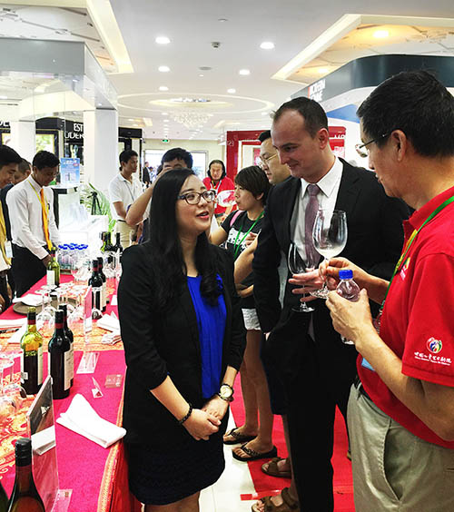 除了以上优惠活动,现场游客还体验到一场吴哥免税店精心准备的惊喜活动——澳洲杰卡斯葡萄酒品鉴会。这场高端品鉴会现场,顾客频频举杯,没有中国传统的“中国式的干杯”,大家在专业的葡萄酒知识讲解中,慢慢品味美酒,免税店内单宁与果香的交响将活动推向又一个高潮。