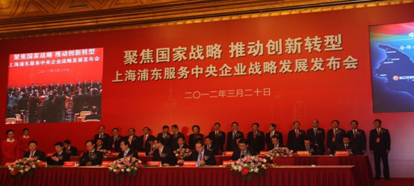 2012年3月20日,国旅股份公司总裁张建华、副总裁彭辉、ac米兰官方网站党委书记兼副总经理陈建山出席了在上海东郊宾馆举行的“上海浦东服务中央企业战略发展发布会”。