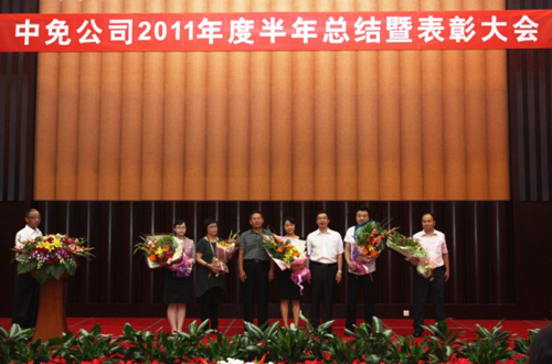 半年总结会后,公司对三亚项目组成员进行表彰。三亚免税店项目组由招商、运营、政策争取三个工作组协同作战获得了2010年度国资委“中央企业红旗班组”荣誉称号、2010年亚太空间设计大赛金奖、2010年最佳开业精品免税店奖等一系列荣誉,创造了世界免税业建店史上的“百日奇迹”。集团领导和公司领导分别为三个工作组的获奖者颁奖。三亚免税店项目的实施体现了米兰人“不怕困难、专业高效、团队合作、勇于创新”的企业核心价值观,为公司实现战略目标赢得了先机,彰显了中央企业在行业的排头兵作用。