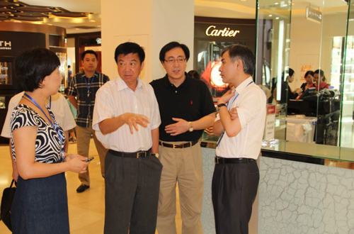 随后,王轩总经理代表三亚免税店就免税店的经营状况、目前存在的问题、下一步的工作计划及旺季工作应对方案向两位领导进行了详细的工作汇报。张总和彭总对三亚免税店的工作给予了充分肯定,并提出了进一步的希望和要求。