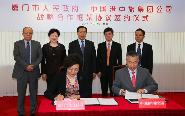 会谈后,厦门市倪超副市长和集团许慕韩副总经理代表双方签署了《厦门市人民政府中国港中旅集团战略合作框架协定》,厦门市人民政府裴金佳市长、廖华生秘书长,集团张学武董事长、姜岩总经理、傅卓洋副总经理共同证签。郑江总经理助理主持签字仪式。