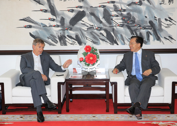 6月18日,张学武董事长在集团大厦会晤了澳大利亚Pepper集团董事局主席Seumas一行,双方就中国消费金融市场的发展前景及消费金融领域合作等事宜进行了深入探讨。张逢春总会计师、郑江副总会计师以及集团法律部、金融板块相关人员陪同会见。