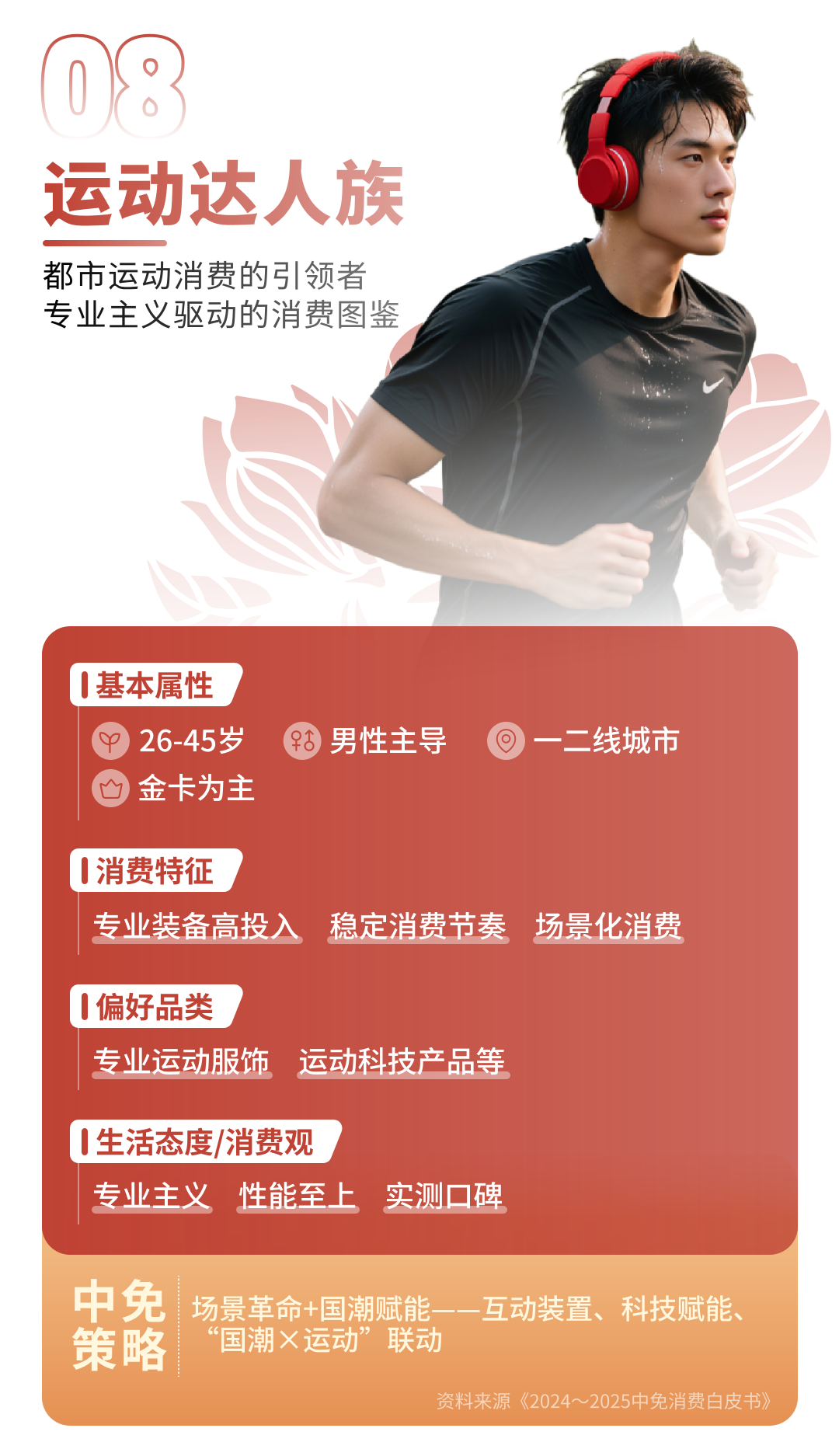 运动达人族则聚焦专业运动装备与功能性产品(高蛋白食品、运动营养补充剂),构建健康生活方式闭环。