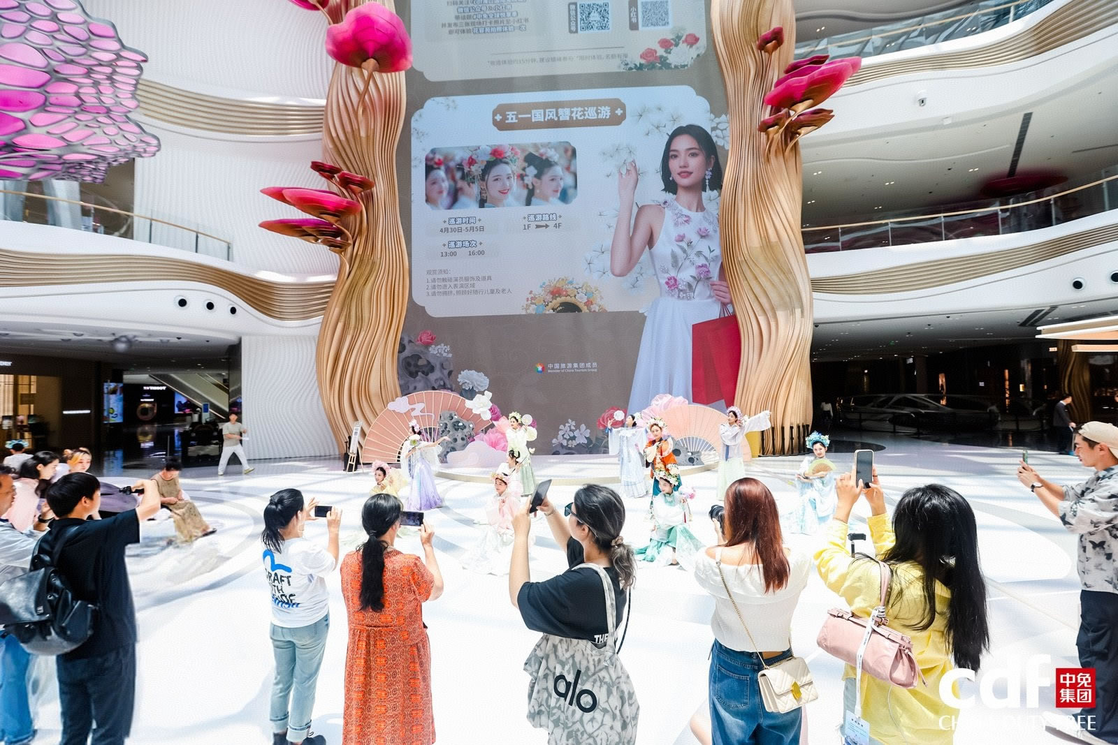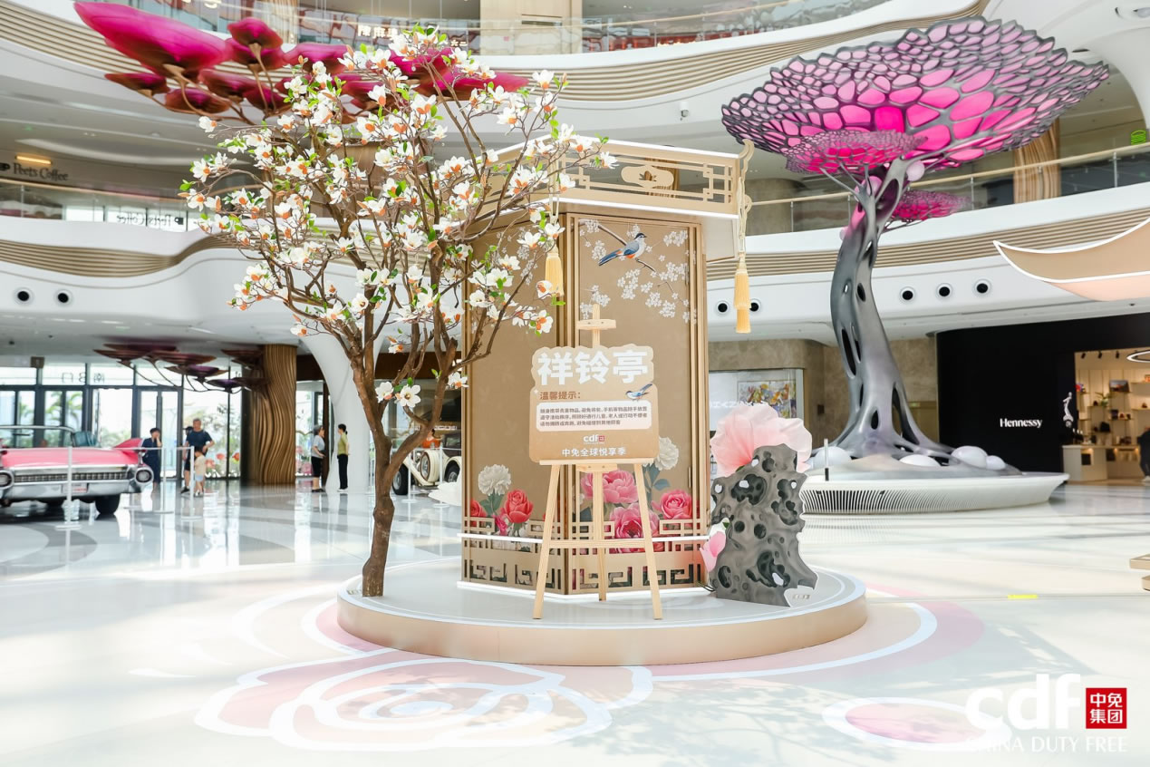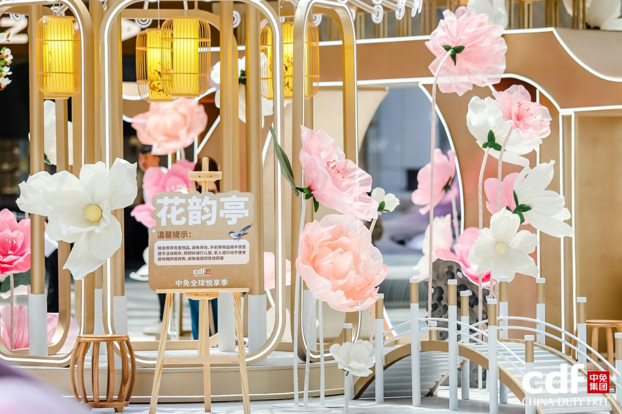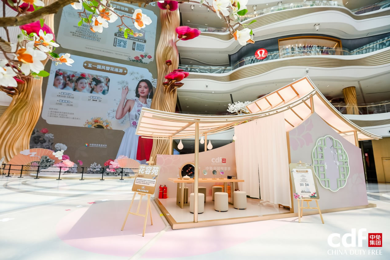 cdf海口国际免税城重磅推出首个国风美学空间——米兰悦享花园,并设置三大互动打卡点“花容苑”、“祥铃亭”、“花韵亭”,让消费者在购物的同时感受东方美学魅力。“花容苑”化妆师现场为顾客打造新中式妆容,传递东方美学自信,联动小相馆打印花卉主题照片,带来沉浸式美学体验。在五一假期期间,cdf海口国际免税城特别策划国风牡丹花使簪花巡游,活动现场花使与消费者进行合影互动并派发礼品,进一步传递非遗簪花的文化魅力。母亲节期间将邀请国风乐团,现场演绎国风乐坊秀,消费者可邀请妈妈一起,享受一场新中式美学视听盛宴。cdf海口日月广场免税店打造缤纷花墙合影点,让春日好礼触手可及。