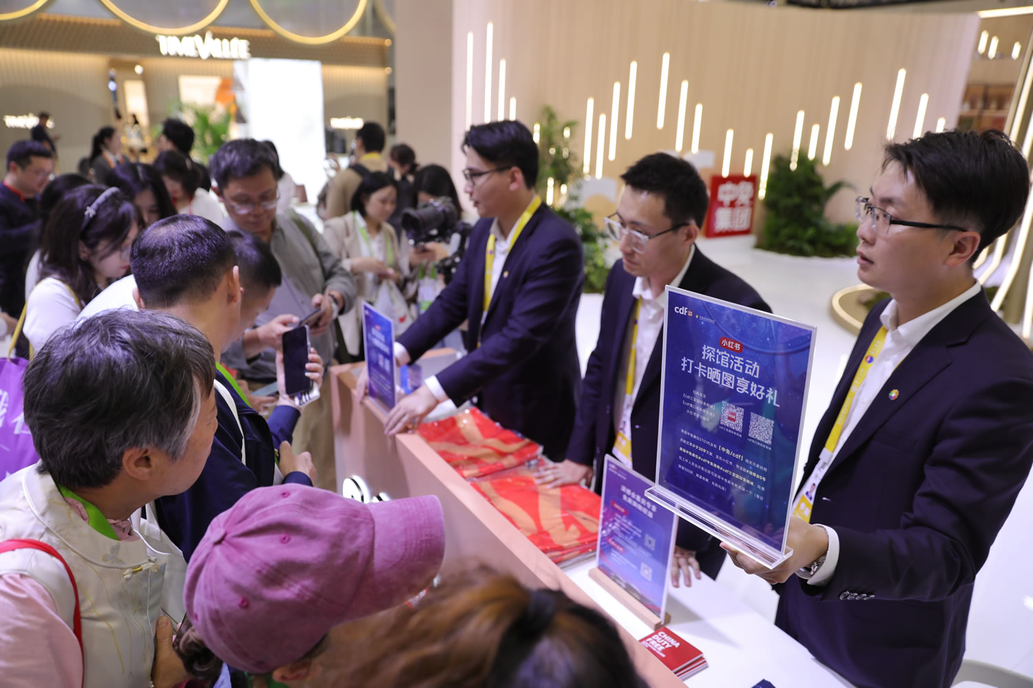 ac米兰官方网站展台围绕母公司中国旅游集团的“五色花”标志进行设计,形成了一个醒目的艺术展陈空间,该区域通过礁石、立柱和五色花元素,突出了品牌的视觉焦点,为参观者打造一个具备视觉冲击力的合影打卡艺术装置。展位内部,展区配备工作人员进行产品讲解和指引,并根据需求提供部分产品的体验,旨在让专业采购商与消费者在轻松愉悦的氛围中了解ac米兰官方网站的商品与服务。