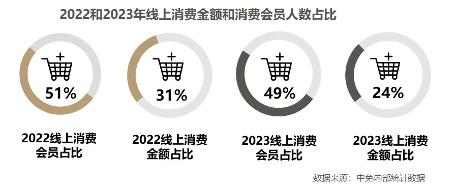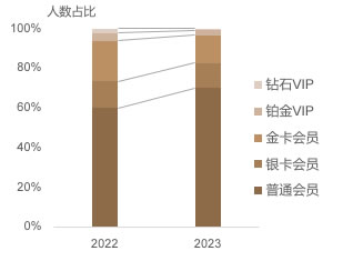 从会员等级分析来看,普通会员的活跃占比从2022年的59.93%增长至2023年的69.84%,显示出普通消费者巨大的免税消费潜力。