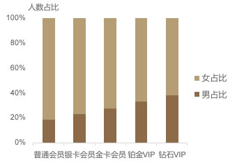 ● 男性高等级会员展现消费潜力,占高等级活跃会员比重逐年提高