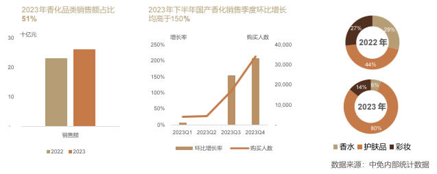 香化品类销售额 国产香化销售环比趋势 初次销售品牌销售额占比